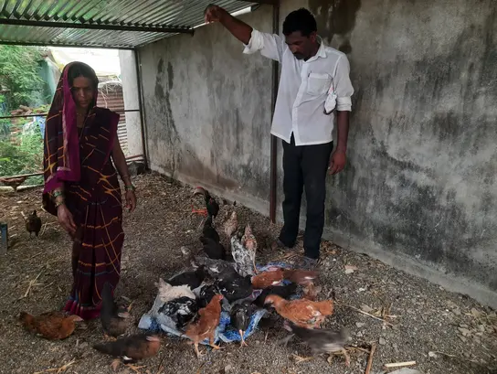 Praveen Narayan Jadhav, a sugarcane worker from the Banjara community, faced severe financial hardships. His family migrated for seasonal work, struggling to meet their needs. This seasonal migration harmed the education of his children. They missed their school and eventually dropped out. However, with the support of the Marathwada Gramin Vikas Sanstha, Praveen got an opportunity to start poultry farming.
