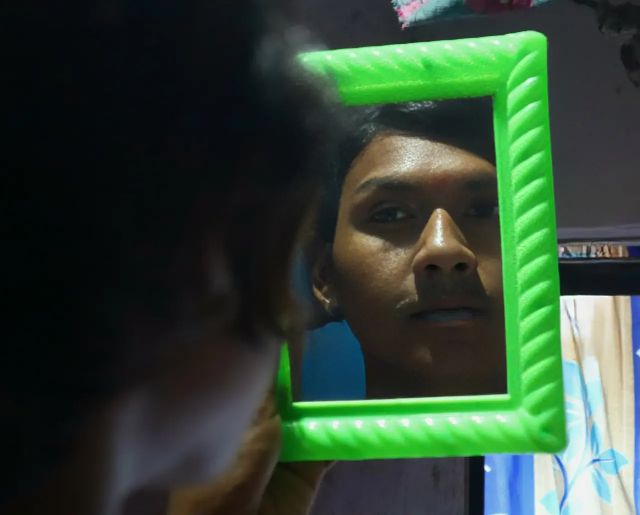 Dibakar, a 19-year-old from a slum near Kolkata’s dumping ground, has faced rejection, discrimination, and violence for his gender expression since childhood. Growing up, he was more comfortable with girls, loved makeup, and longed to wear women’s clothing. However, his father physically abused him, and his family restricted his freedom to maintain their social reputation. During COVID-19, he had to beg at traffic signals, dressing as a woman to support his struggling family. His younger brother refused to accept him, and his neighborhood constantly mocked him with slurs.