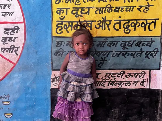 Zarina, a young girl from Chhattisgarh, faced immense challenges early in life. Born in 2020, she lost her mother during childbirth, and her father rejected her. Raised by her aunt and uncle, Zarina suffered from severe malnutrition as she was fed powdered milk and black tea instead of breast milk. In October 2023, her family relocated to Ladpura village, Rajasthan, seeking work at a brick kiln. Like other children in the age group of 0-6 years, Zarina was linked to the health and nutrition centre running from the HAQ BMZ project’s support at the kiln.